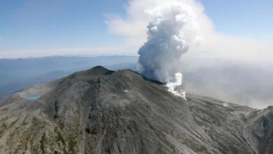 28 أغسطس، 20250بركان جبل شينموي الياباني يثور نافثا سحابة رماد