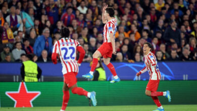 أتليتيكو مدريد يتغلب على برشلونة بثنائية ويقترب من نصف نهائي دوري الأبطال