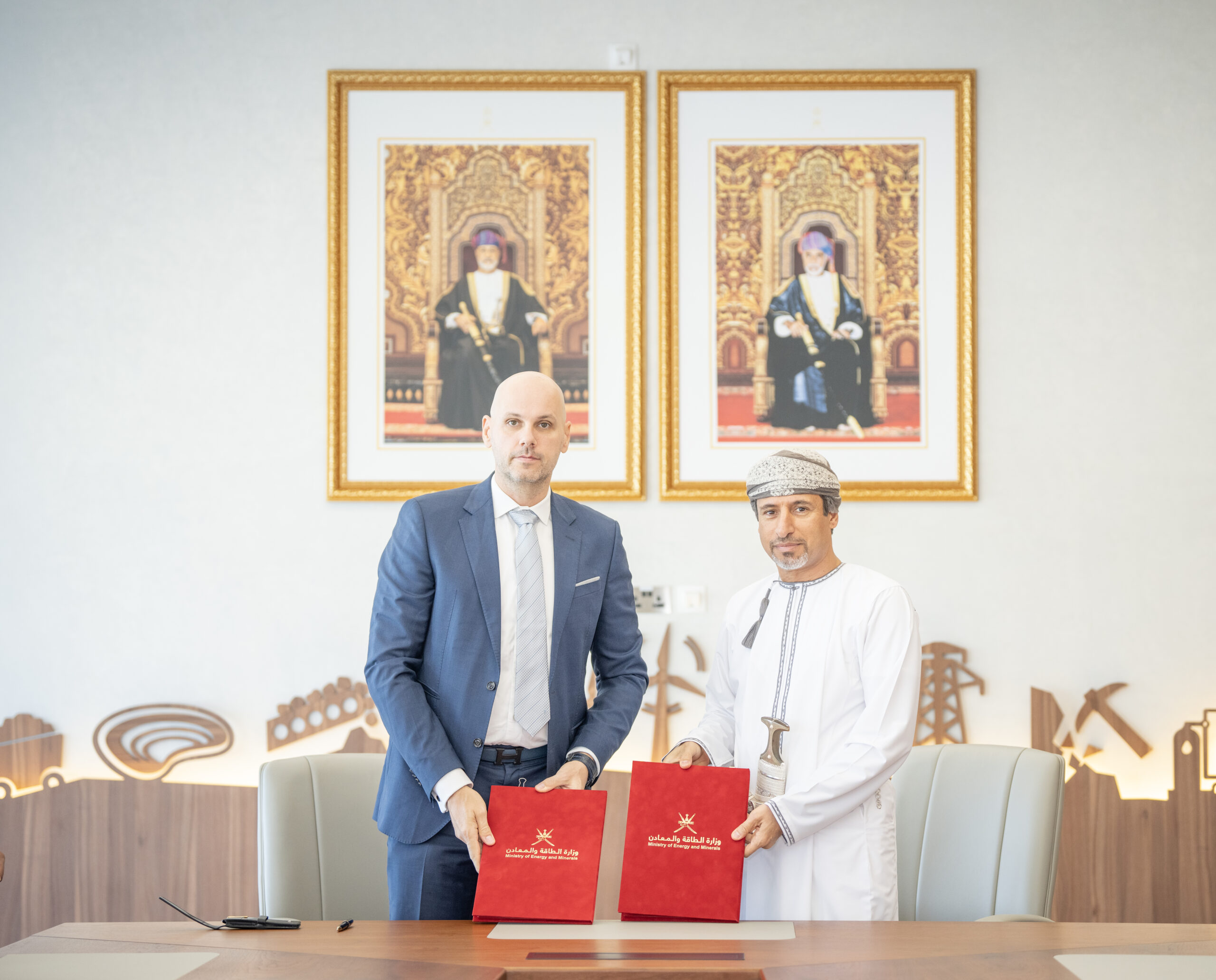 وقّع الاتفاقية نيابةً عن حكومة سلطنة عُمان معالي المهندس سالم بن ناصر العوفي وزير الطاقة والمعادن، فيما وقّعها عن الشركة الدكتور رومان لورف بالإنابة عن رئيس مجلس الإدارة.