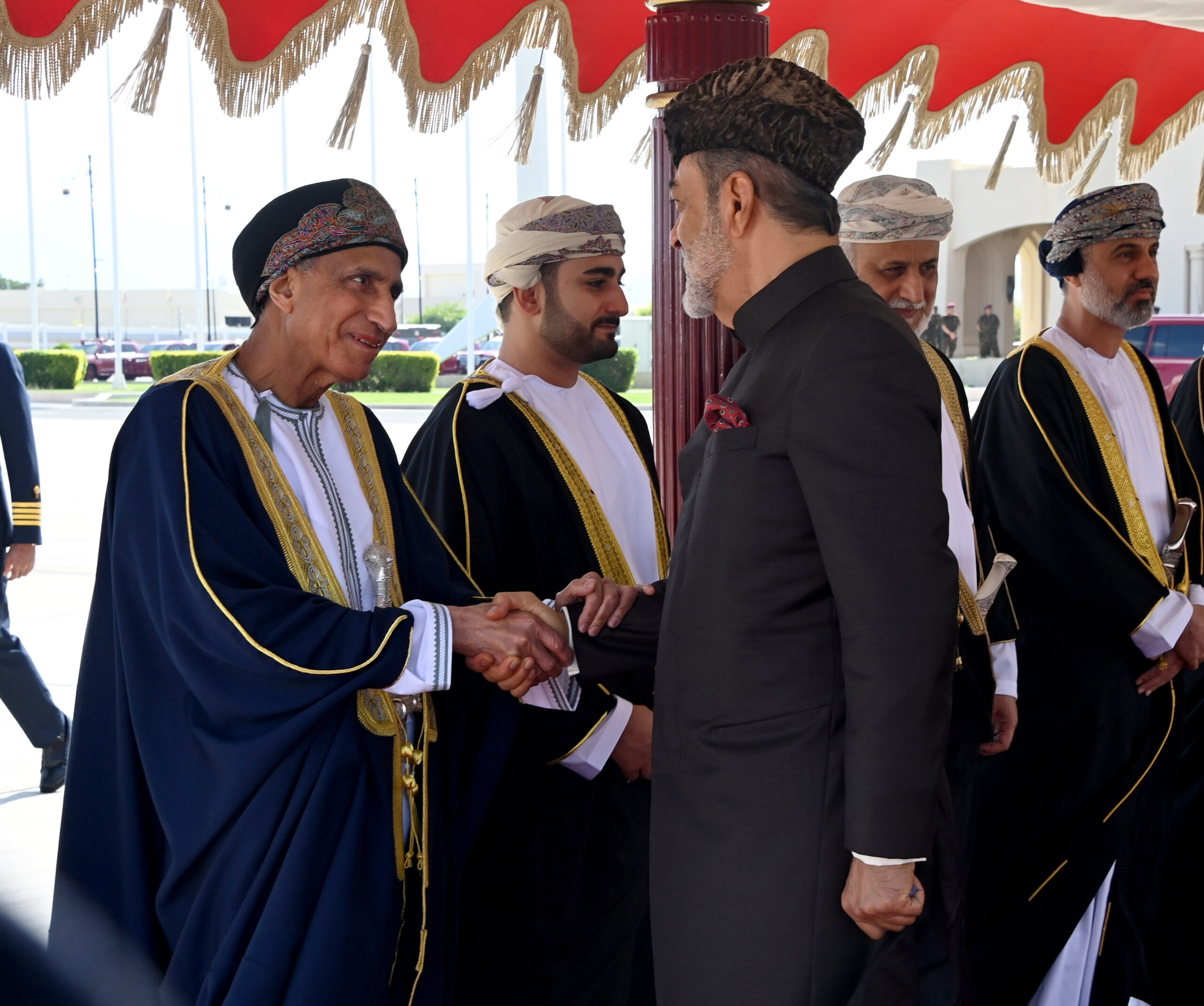 وكان في وداعِ جلالةِ السُّلطان المفدّى /أعزَّهُ اللهُ/ لدى مغادرته المطار السُلطانيّ الخاصّ، كلٌّ من صاحب السُّمو السّيد فهد بن محمود آل سعيد نائب رئيس الوزراء لشؤون مجلس الوزراء وصاحب السُّمو السّيد ذي يزن بن هيثم آل سعيد وزير الثقافـة والرياضة والشباب ومعالي الشيخ عبدالملك بن عبدالله الخليلي رئيس مجلس الدولة وسعادة خالد بن هلال المعولي رئيـس مجلس الشورى ومعالي السّيد حمود بن فيصل البوسعيدي وزير الدّاخلية ومعالي السّيد محمد بن سُلطان البوسعيدي نائب رئيس المجلس الأعلى للقضاء ومعالي نصر بن حمود الكندي أمين عام شؤون البلاط السُّلطاني ومعالي الدكتـورة مديحة بنت أحمد الشيبانية وزيرة التربية والتعليم ومعالي الشيخ الفضل بن محمد الحارثي أمين عام مجلس الوزراء ومعالي الفريق حسن بن محسن الشريقي المفتش العام للشرطة والجمارك ومعالي الفريق سـعيد بن علي الهلالــي رئيس جهاز الأمن الدّاخلي ومعالي الدكتور محمد بن سعيد المعمري وزير الأوقاف والشؤون الدينية ومعالي الدكتور هلال بن علي السبتي وزير الصحة والفريق الركن بحري عبدالله بن خميس الرئيسي رئيـس أركان قوات السُّلطان المسلحة واللواء الركـن مطر بن سالم البلوشي قائد الجيش السُّلطانـي العُماني واللواء الركن طيـار خميس بن حمّاد الغافري قائد سلاح الجو السُّلطاني العُماني واللواء الركن بحـري سيف بن ناصر الرحبي قائد البحرية السُّلطانية العُمانية واللواء الركن مسلم بن محمد جعبوب قائد قوة السُّلطان الخاصّة.