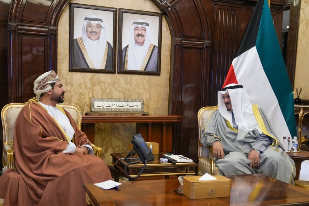 الكويت في 24 ديسمبر/إشراق / استقبل سمو الشيخ أحمد عبد الله الأحمد الصباح رئيس مجلس الوزراء بدولة الكويت في قصر بيان، اليوم، معالي قيس بن محمد اليوسف وزير التجارة والصناعة وترويج الاستثمار، والوفد المرافق له المشارك في حفل افتتاح المنتدى والمعرض الاقتصادي العماني الكويتي.تم خلال المقابلة بحث تعزيز علاقات التعاون بين سلطنة عُمان ودولة الكويت الشقيقة لاسيما في المجال التجاري والاستثماري.
