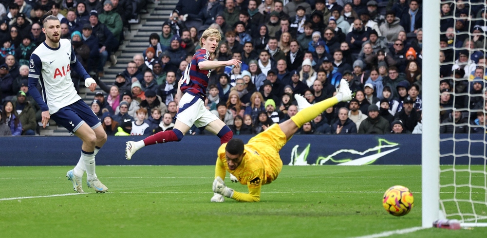 وكان هدف توتنهام الوحيد قد أتى من ضربة رأس عبر دومينيك سولانكي في الدقيقة /4/، ثم بفضل هدف أنتوني جوردون من تسديدة أرضية من مدى قريب أدرك نيوكاسل التعادل في الدقيقة /6/، وفي الدقيقة /38/ سجل ألكسندر إيزاك هدف نيوكاسل الثاني؛ ليحقق انتصاره الخامس على التوالي في الدوري.