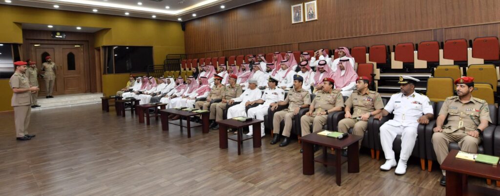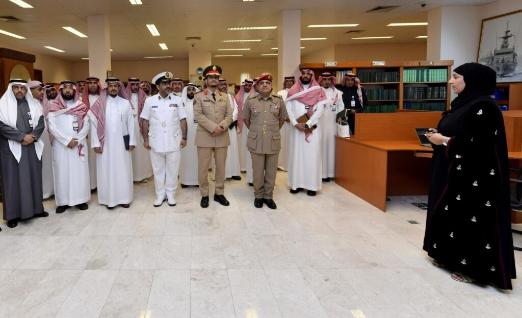 وقد استمع قائد كلية الحرب بجامعة الدفاع الوطني بالمملكة العربية السعودية والوفد المرافق له إلى إيجاز عن كلية الدفاع الوطني وما تقدمه من منهاج إستراتيجي يُعنى بإعداد كفاءات وطنية قادرة على صناعة القرار الإستراتيجي في مختلف المستويات، كما اطلع الوفد على أقسام ومرافق الكلية المختلفة.
