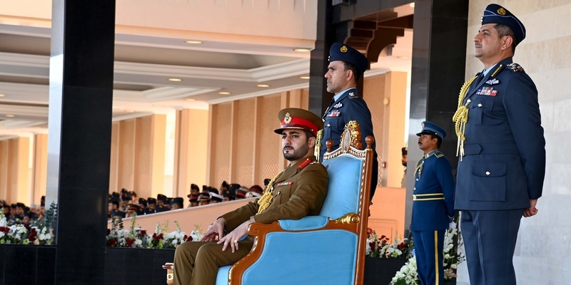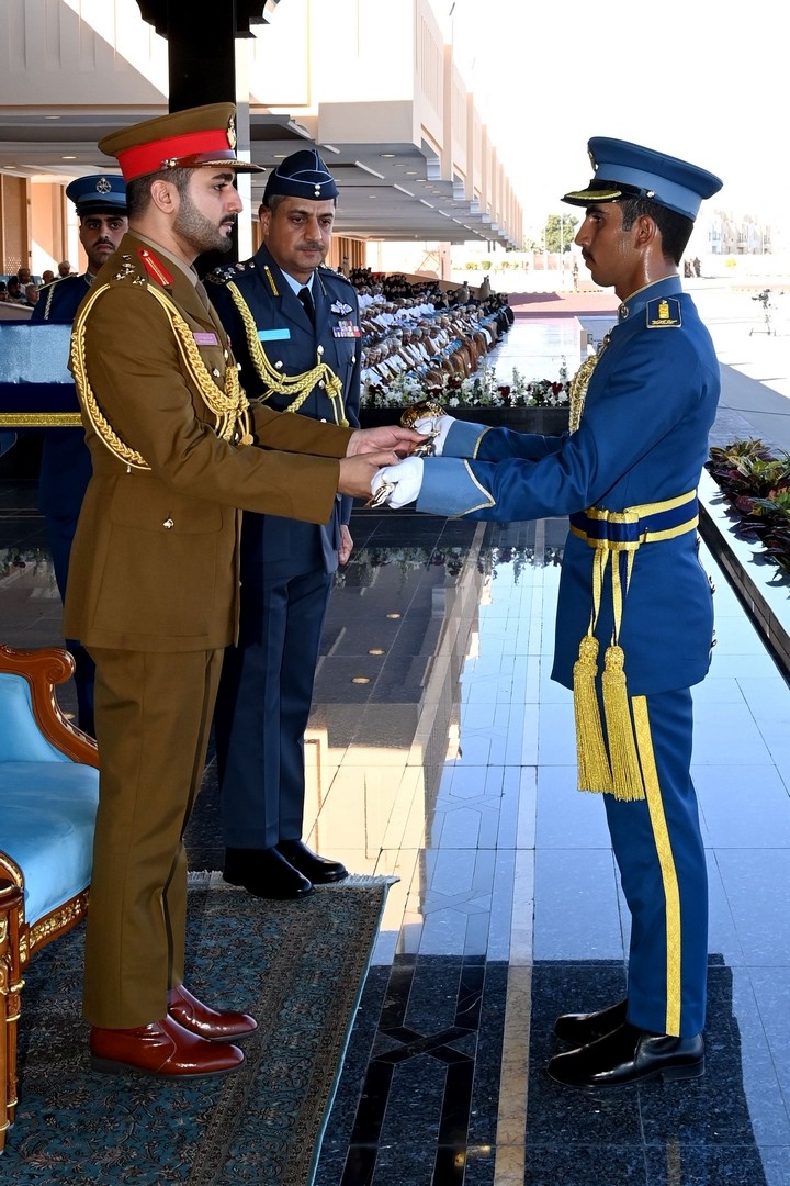 بعدها سلم سمو راعي الاحتفال سيف الشرف للملازم جوي الوليد بن خالد المعمري الحاصل على المركز الأول على المستوى العام لدورة الضباط المرشحين الأساسية، وكرّم سموه الملازم جوي يعقوب بن خلفان الريامي الحاصل على المركز الأول على مستوى دورة الضباط المرشحين للخدمة المحدودة والجامعيين.
