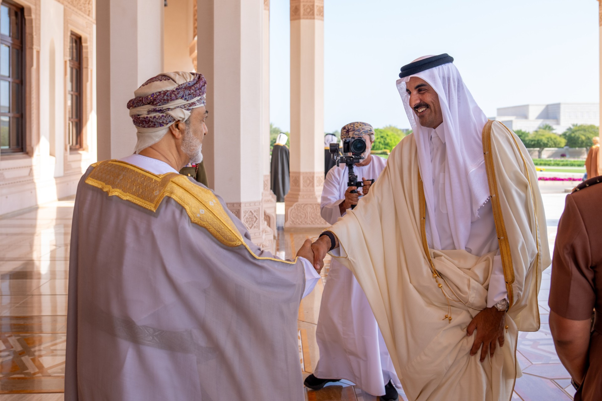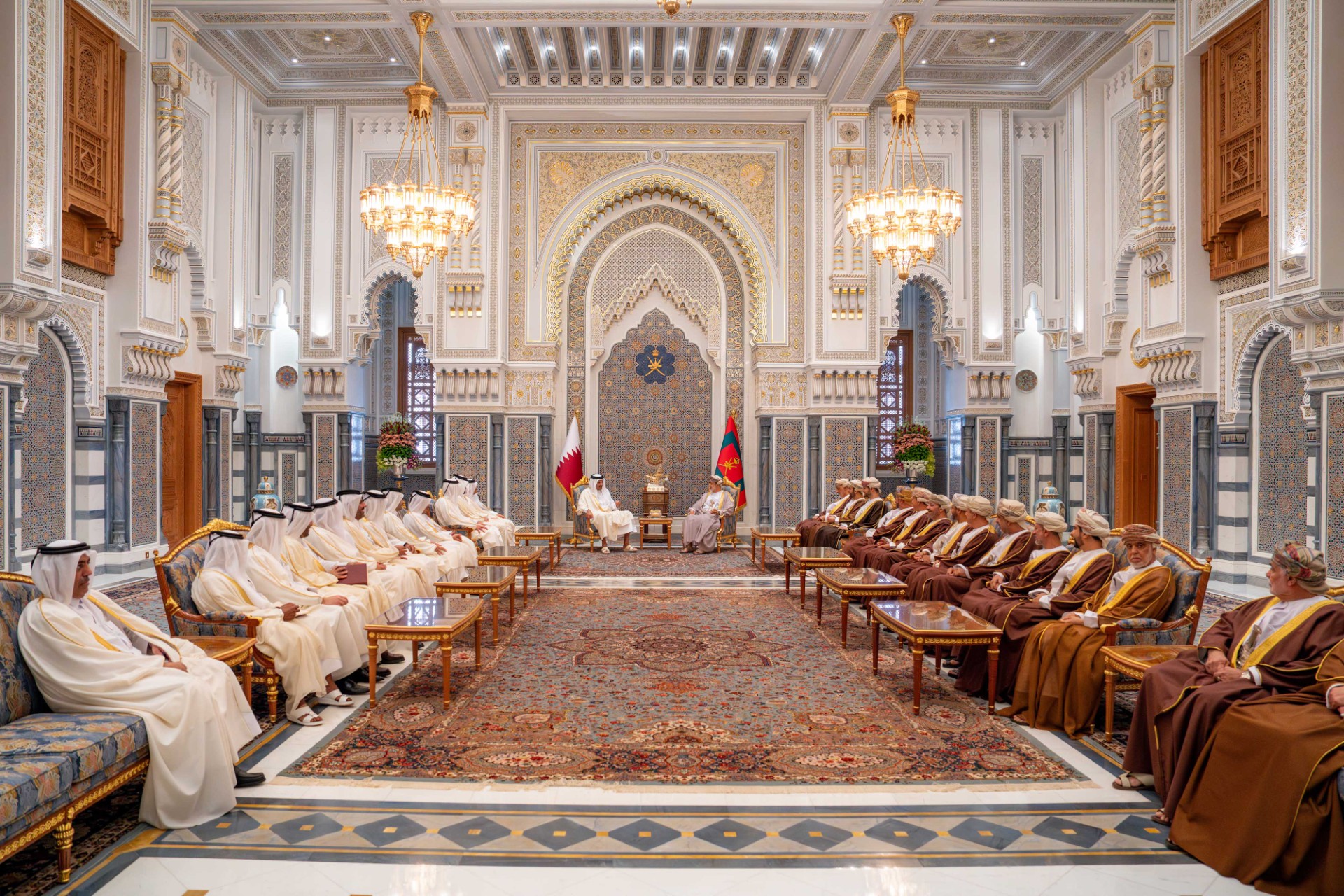 لقاءٌ أخويٌّ بين جلالةِ السُّلطان وأميرِ دولة قطر بقصر البركة العامر