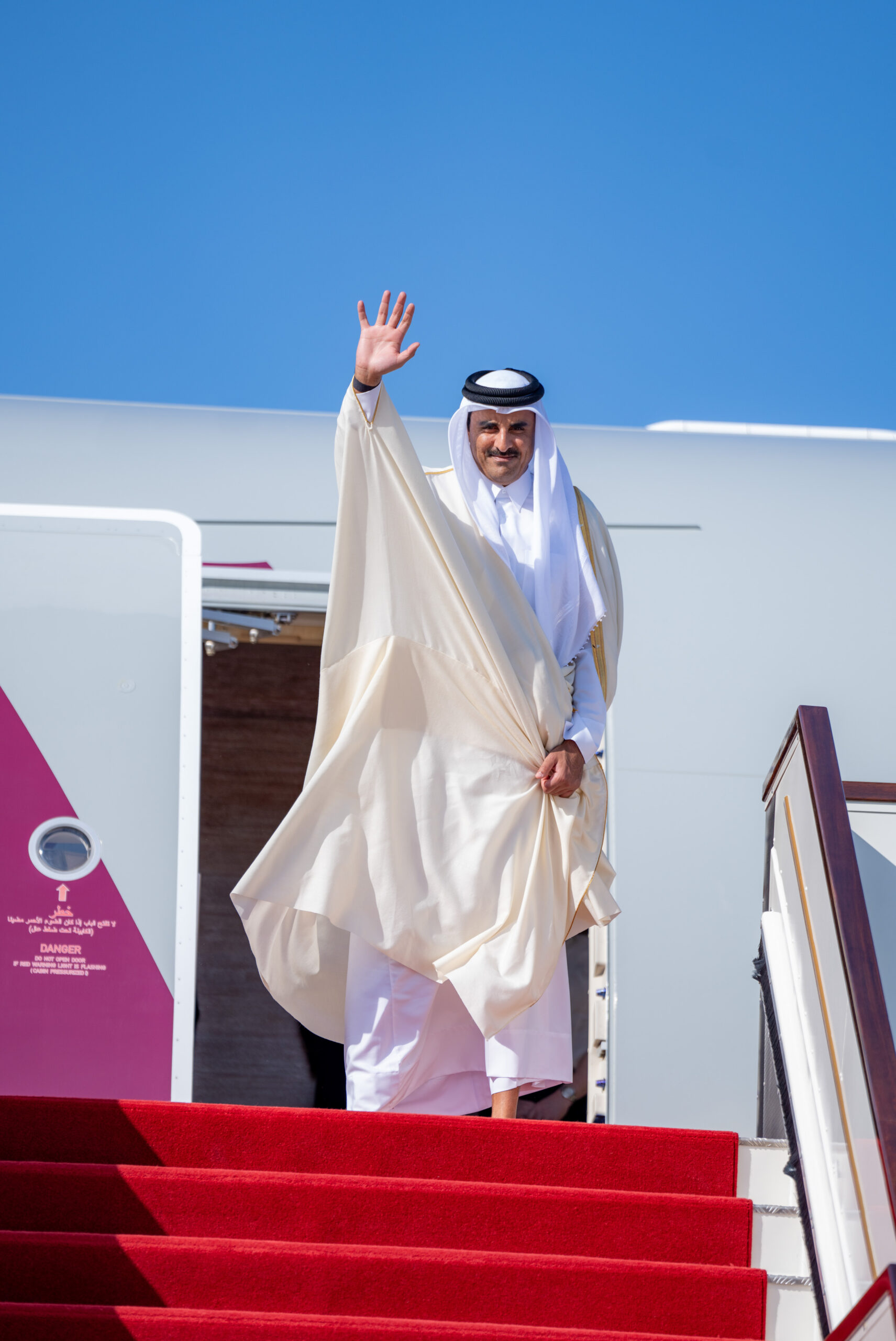 مسقط في 29 يناير /العُمانية/ ودّع حضرةُ صاحبِ الجلالةِ السُّلطان هيثم بن طارق المعظّم /حفظهُ اللهُ ورعاهُ/ أخاه حضرةَ صاحبِ السُّموّ الشيخ تميم بن حمد آل ثاني أميـر دولة قطر الشقيقة لدى مغادرته المطار السُّلطانيَّ الخاصّ اليوم، بعد زيارة “دولةٍ” لسلطنة عُمان استغرقت يومين، وقد تمنّى جلالةُ السُّلطان لأخيه سُموّ الأمير ووفده المرافق سفرًا آمنًا، تحفّهم عناية الرحمن، وصولًا إلى بلادهم العزيزة.