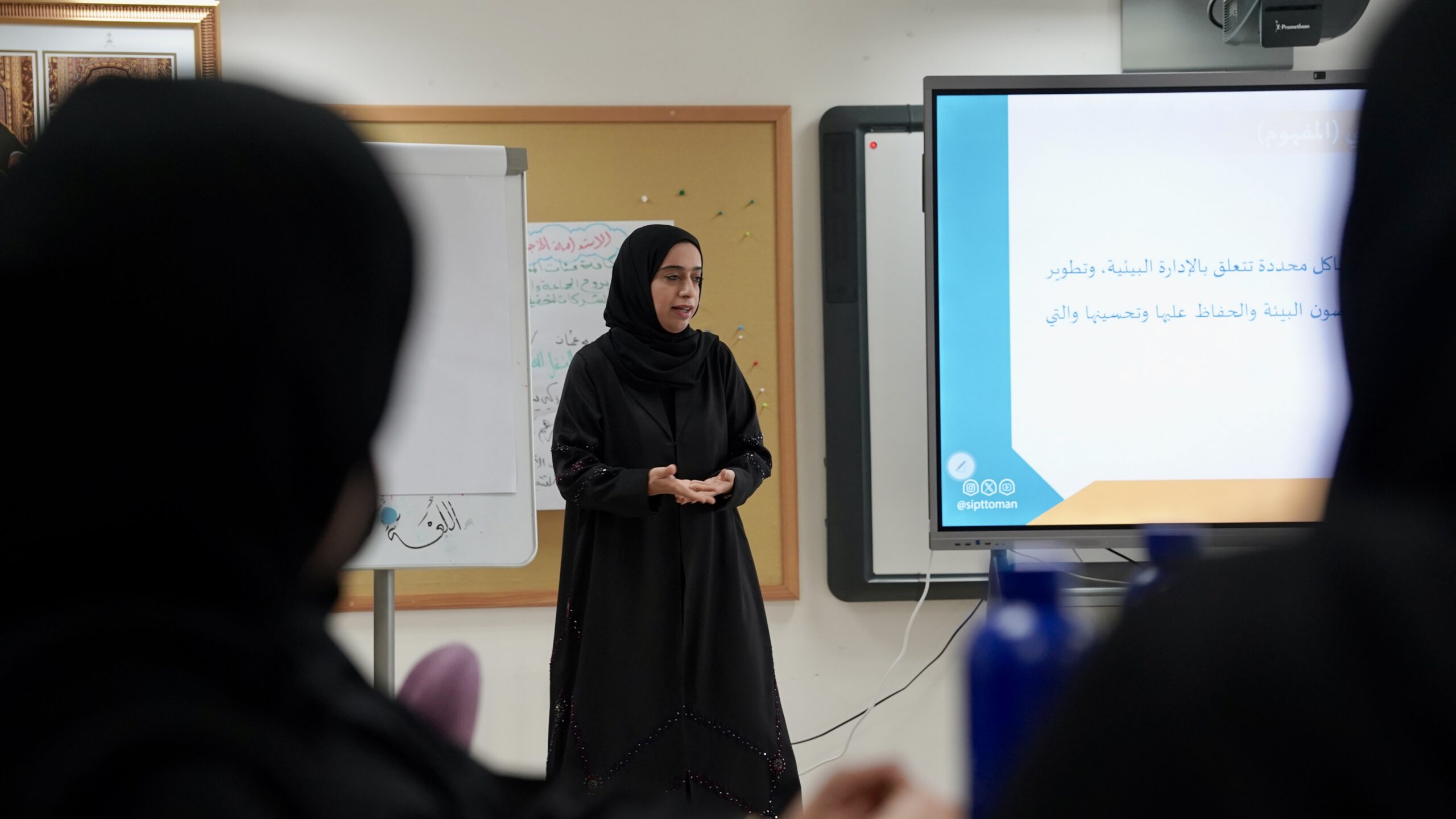 وقالت حفصة بن حمود الحراصية اختصاصي تواصل من شركة بيئة إن برنامج ‘مختبرات الاستدامة’ يمثل استثمارًا استراتيجيًّا في التعليم والبيئة، حيث نهدف إلى تمكين المعلمين ليكونوا قادة التغيير في مجتمعاتهم، وترسيخ ممارسات بيئيّة مستدامة تسهم في بناء مستقبل أكثر وعيًا بالاستدامة.