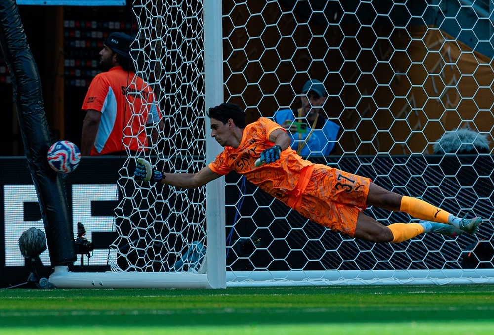 ميامي في 19 يونيو /إشراق/ تمكن حارس المرمى الدولي المغربي ياسين بونو من إنقاذ فريقه الهلال السعودي من خسارة أمام ريال مدريد بتصديه لركلة جزاء في الوقت القاتل، مفروضًا تعادلاً ثمينًا 1-1، فيما خسر الوداد المغربي أمام مانشستر سيتي الإنجليزي 0-2، في حين تلقى العين الإماراتي خسارة ساحقة أمام يوفنتوس الإيطالي 0-5 في كأس العالم للأندية.