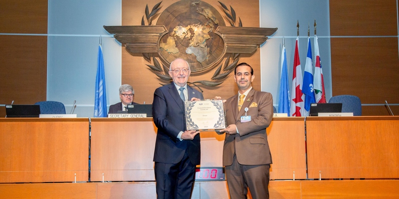 وقد جاء هذا التكريم أثناء مراسم افتتاح الدورة الثانية والأربعين للجمعية العمومية للمنظمة في مقرها بمدينة مونتريال الكندية.