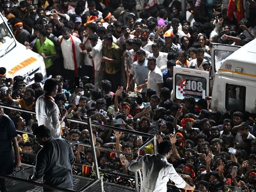 وتجمعت حشود للمشاركة في التجمع الانتخابي في ولاية “تاميل نادو”، والذي يأتي في إطار جولة “فيجاي” لدعم حزب تاميلاجا فيتري كازاجام في الانتخابات.