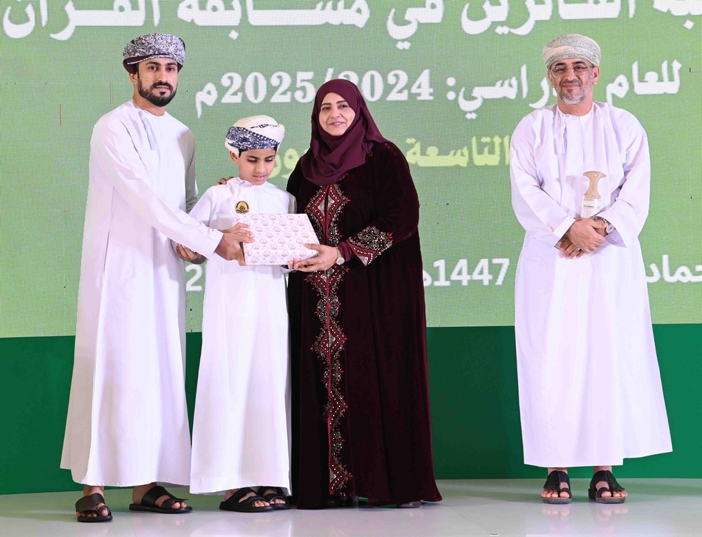 مسقط في 3 ديسمبر 2025 /العُمانية/ كرّمت وزارة التربية والتعليم ممثلة بالمديرية العامة لتطوير المناهج اليوم الطلبة الفائزين في مسابقة القرآن الكريم للعام الدراسي 2024/ 2025م والذي بلغ عددهم 73 طالبًا وطالبة في مسارات المسابقة المختلفة.