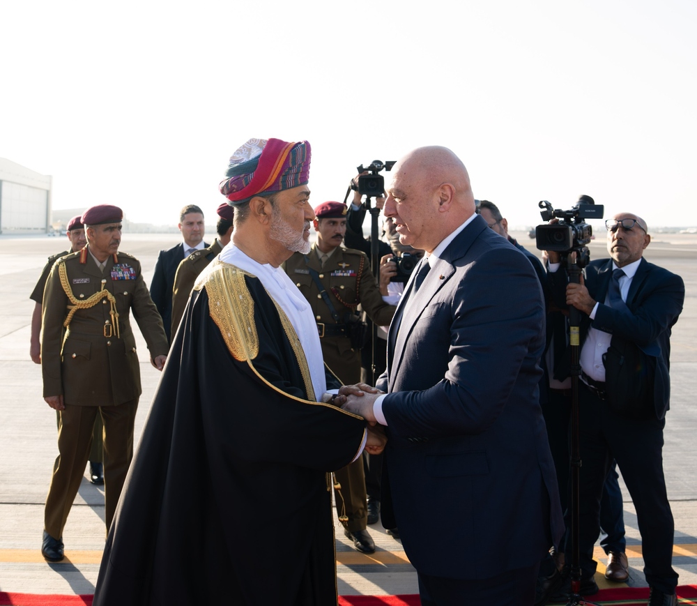 وكان حضرةُ صاحبِ الجلالةِ السُّلطان هيثم بن طارق المعظّم /حفظهُ اللهُ ورعاهُ/ في مقدّمة المُستقبلين والمُرحّبين بفخامةِ الرئيس عند سُلّم الطّائرة لدى وصوله إلى المطار السُّلطاني الخاصّ، مُتمنّيًا له ولوفده المرافق زيارةً طيّبةً ومُكلّلةً بالتّوفيق.