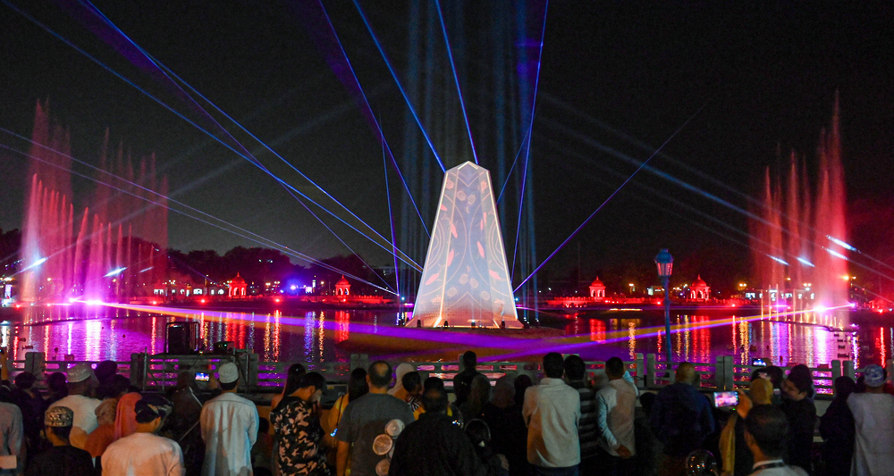 وحظي متنزه القرم الطبيعي بإقبال كبير من الزوار خلال الفترة الماضية لمشاهدة عروض النوافير المائية التي تقدم بحركات فنية متناغمة مع الموسيقى والإضاءة في لوحات ليلية مبهرة باستخدام تقنيات عالميّة متقدّمة تجمع بين حركة الماء والإضاءة الذكية والمؤثرات الصوتية لتمنح الزوار تجربة استثنائية متكاملة تنبض بالجمال والإبهار طوال ليالي الفعالية.