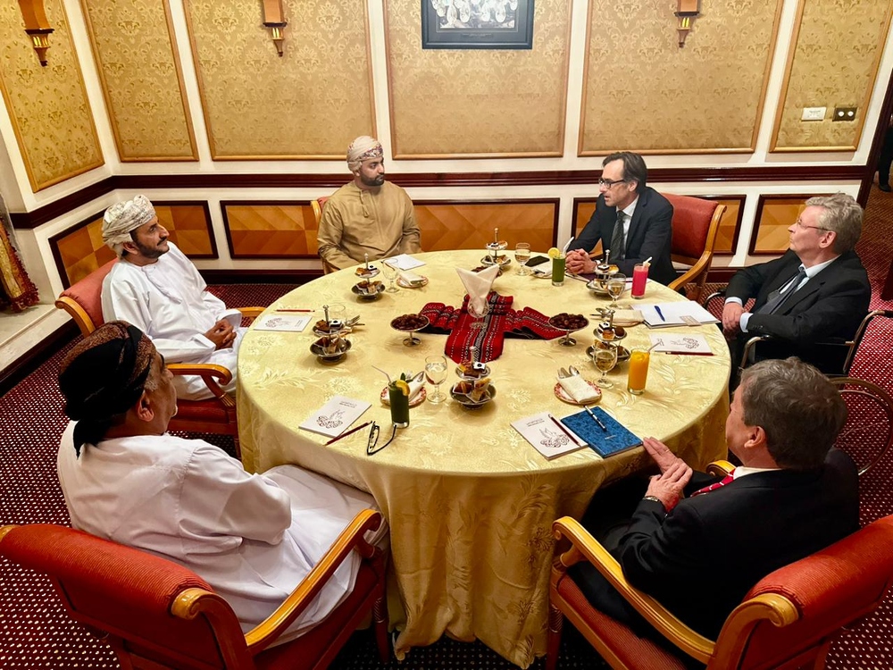 مسقط في ١٦ مارس /العُمانية/ التقى سعادة الشيخ خليفة بن علي الحارثي، وكيل وزارة الخارجية للشؤون السياسية اليوم بسعادة الدكتور توبياس تونكل المدير العام لمنطقة الشرق الأدنى والأوسط وشمال أفريقيا بوزارة الخارجية الاتحادية بجمهورية ألمانيا الاتحادية.
