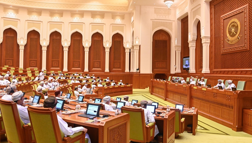 ترأس الجلسة معالي خالد بن هلال المعولي رئيس مجلس الشورى بحضور سعادة الشيخ أحمد بن محمد الندابي أمين عام المجلس وأصحاب السعادة الأعضاء.