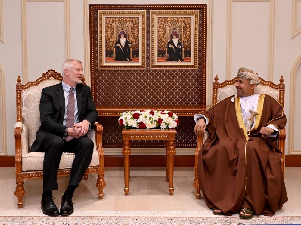 مسقط في 27 أبريل 2026 /العُمانية/إشراق/ استقبل معالي الدكتور محمد بن ناصر الزعابي أمين عام وزارة الدفاع اليوم بمكتبه بمعسكر المرتفعة معالي أليستر كارنز وزير القوات المسلحة بالمملكة المتحدة والوفد المرافق له.