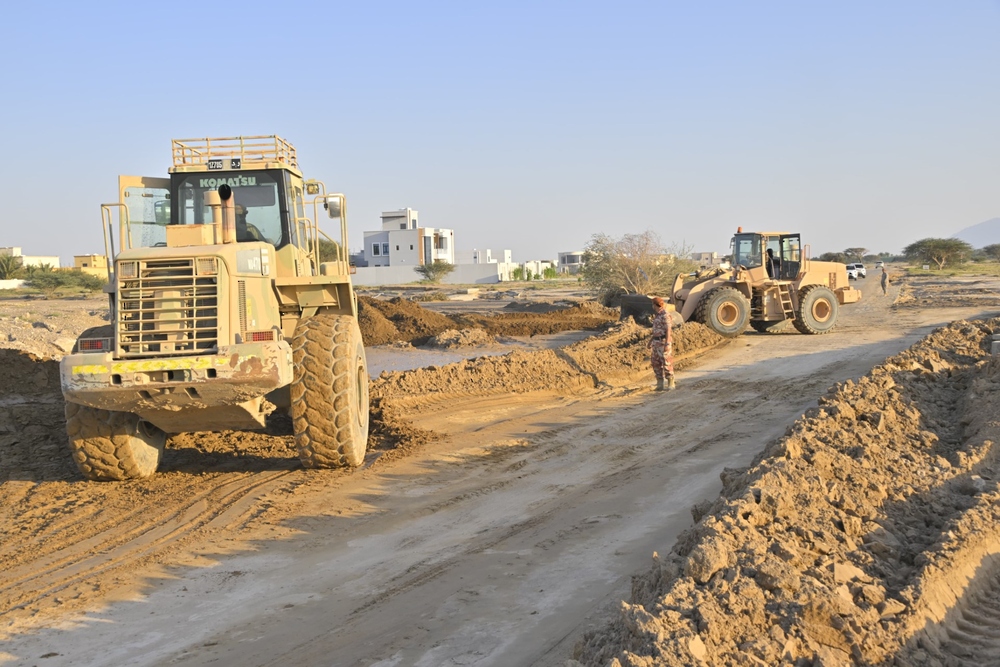 كما نفذت وحدات الجيش السلطاني العُماني ممثلة بكتيبة الصحراء بنيابة سمد الشأن بولاية المضيبي بمحافظة شمال الشرقية عمليات إسناد بالمعدات الثقيلة والخدمات اللازمة؛ لإكمال أعمال الصيانة وتأهيل الطرق.